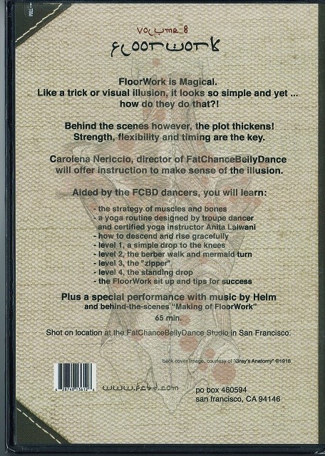 90年代、ATSが日本にはいってきたころ、だれもがこのDVDを見て真似し、練習しました。今でこそ、世界中で大人気のベリーダンススタイルです。基本のステップと、キーとなる動きを覚えれば、世界のどこでもATS群舞の中にはいって踊れ、だれとでも友達になれる、すばらしいスタイルです。この巻からは、ファットチャンスが20年の歴史で積み上げてきた、よく見るけどスカートで隠れていてどうやってるのかわからなかった、ATSの新しい素敵なコンビネーションを解説してくれます。ATSスタイルを踊るダンサーで、ファットチャンスを知らない人、これを見ていない人はもぐりです。第8巻は、代表的なフロアワークのやり方をみっちり解説、体を傷めず練習する方法も教えてくれます。前半はほぼヨガレッスンです。柔軟性をあげてからやらないと体壊しますよということだと思います。